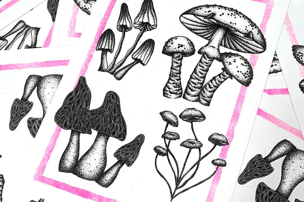 The use of spot ink colours rather than usual CMYK print toner of commercial printing adds an extra dimension and texture to the work. Each Riso print will have a unique one-of-a-kind charm and quality that we just adore.