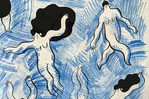 One of our favourite swimming artists is Hattie Clark, whose joyful prints capture the life-affirming thrill of a skinny dip. Come on in, the water’s lovely!